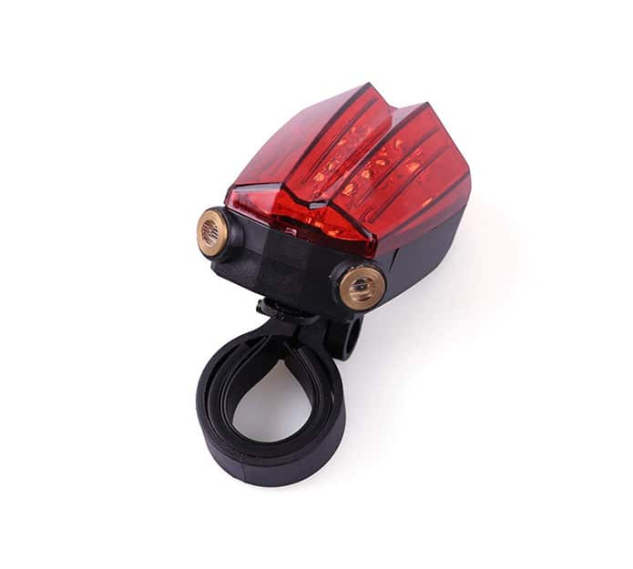 S pomočjo praktičnega nastavka, boste svetilko hitro in preprosto namestili na kolo. Je vodoodporna, zato naj vas vožnja po dežju nikar ne skrbi. Za uporabo laserske luči potrebujete dodatne baterije, ki niso vključene v komplet.