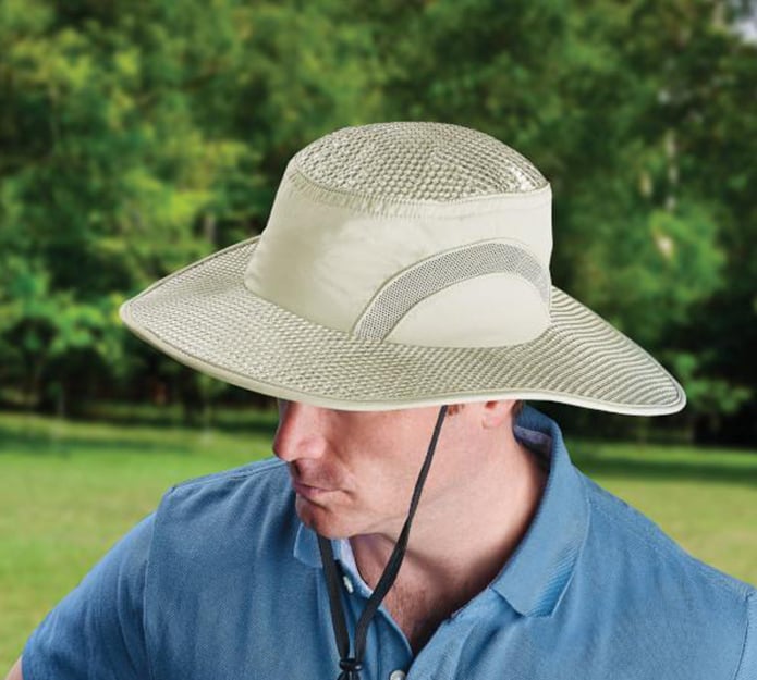 Klobuk je narejen iz lahkih in zračnih materialov, katere uporabljajo vojska, športniki in reševalci. Zunanja površina je prevlečena s posebnim UV odpornim materialom, ki odbija žarke, tako, da je občutek vročine do 80% manjši. V notranjost klobuka natočite malo vode, posebna prevleka v notranjosti se bo prepojila za vodo, ki bo počasi, brez kapljanja izhlapevala med nošnjo. Počutili se boste sveže in zaščiteno ter tako lahko ostali sveži dlje časa.