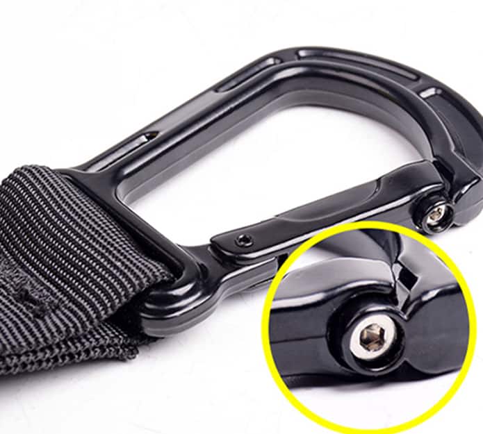 uporabljeni materiali: najlonski trak, zaponka iz cinkove zlitine, gumijast ročaj -