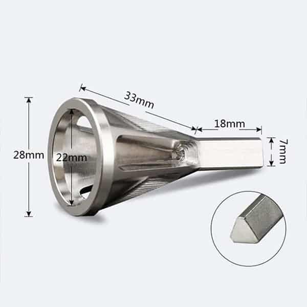 Izdelan iz močnega nerjavečega jekla, zagotavlja dolgo življenjsko dobo in učinkovito deluje na nerjaveče jeklo, kaljeno jeklo, baker, medenino, aluminij, steklena vlakna, les in plastiko! PrimeBolt se prilega na katerikoli ročni vrtalnik, ki pa mora biti med uporabo nastavljen na nizke obrate.
