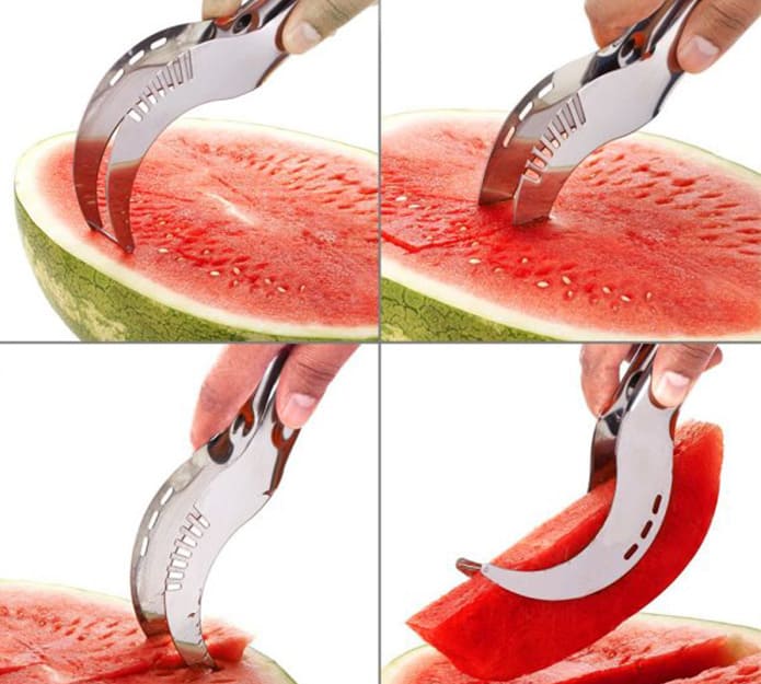 To poletje se osvežite z lubenico, ki jo boste končno narezali brez packanja. Rezalnik za lubenico vam omogoča , da sadež preprosto razrežete na popolne kose, ki jih boste z veseljem postregli. Ko odrežete kos, rezalnik obrnete in kos elegantno zagrabite ter ga odložite na krožnik, brez da bi se sladek sok polival po pultu.