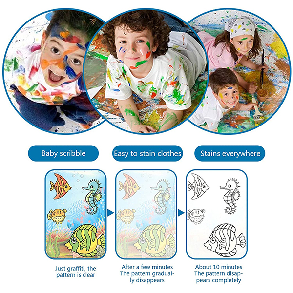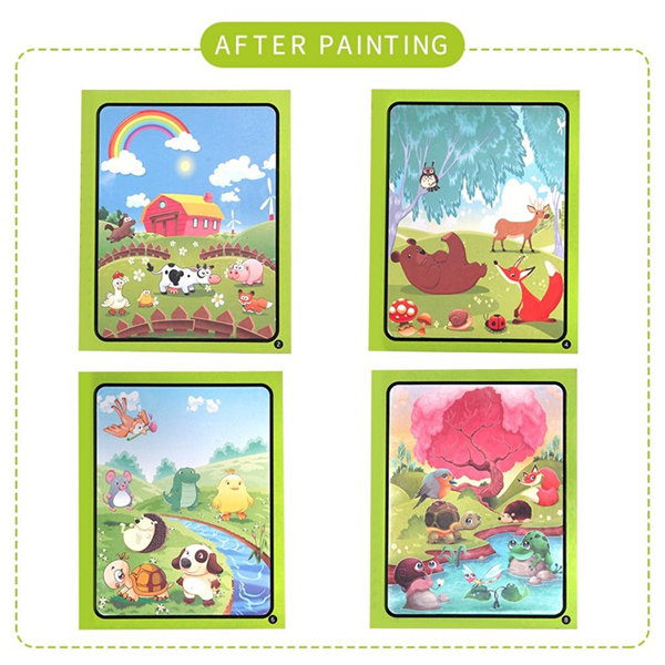 Ko se slika posuši ilustracija izgine in pobarvanko lahko uporabite znova! Motivi podvodnega sveta, živali in otroških aktivnosti bodo vedno znova zanimiv ustvarjalni pripomoček in čudovito darilo za otroke!