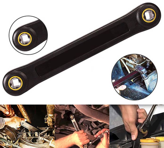 Se pogostokrat znajdete v kočljivem položaju, ko ne dosežete mesta, kjer morate odviti vijak oziroma matico? Zaradi nerodnega kota odvijate matico počasi klik za klikom in postopek popravila traja neskončno dolgo? Končno je na tržišču HandyWrench, pripomoček, ki ste si ga vedno želeli in upali nanj! Podaljšajte si račno in dosezite vsa do sedaj nedostopna in nerodno dosegljiva mesta pod katerim koli kotom in končajte stresne momente in skrajšajte čas popravil.